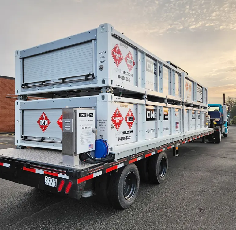OneH2 is the leading source for customized hydrogen fuel solutions, propelling the hydrogen market forward by developing production and delivery solutions for hydrogen fuel from molecule to nozzle. One of the innovative hydrogen fueling solutions OneH2 offers is on-site hydrogen generation systems. The H400.b is OneH2’s largest on-site generator, capable of fueling a fleet of over a hundred lift trucks 24/7. This efficient design allows for convenient, out-of-sight production of hydrogen and supports customers needs.